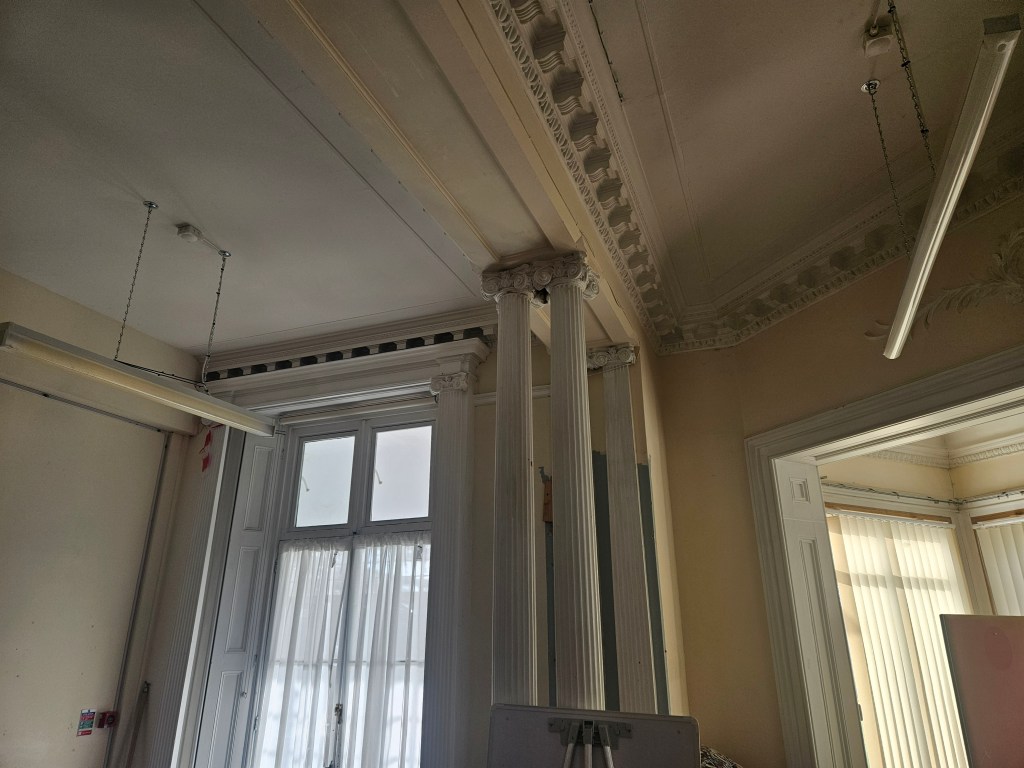 Examples of our work include ceiling and cornice repairs after roof leaks, timber replacement following long-term damp exposure, and restoration of decorative features damaged by water penetration.